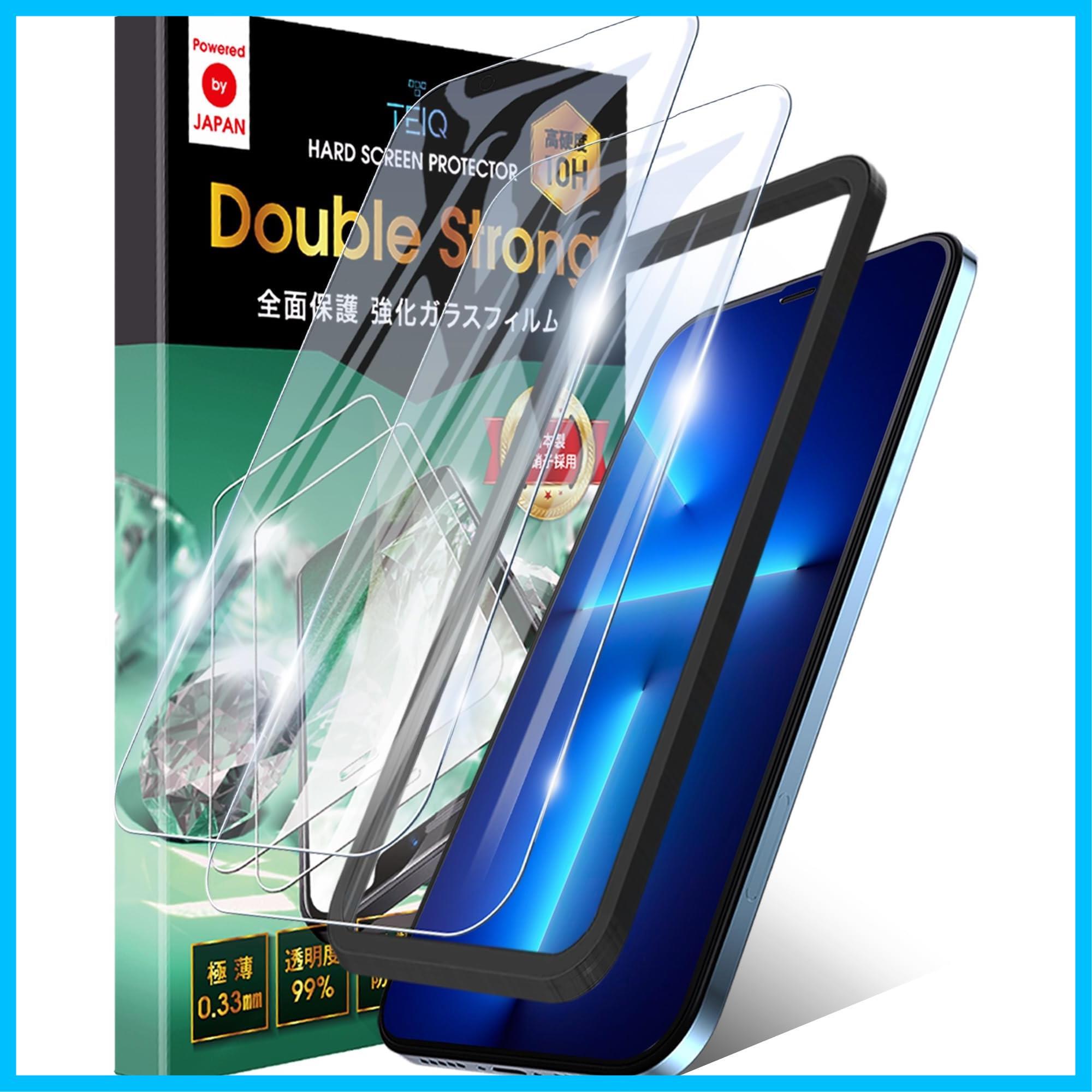TEIQ iPhone 13 / 13 Pro ガラスフィルム ブルーライトカット 透明 【3倍強い 硬度10H 二重強化ガラス】 日本製旭硝子 全面保護 フィルム ガイド枠付き 2枚セット iPhone13 / iPhone13Pro プロ 対応 GFDS-BLC-10 | グランメゾンショップ