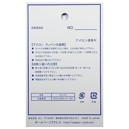 アイロンワッペン接着方法 (1)ワッペンを接着する箇所に正しく置き上からあて布をして下さい。 (2)アイロンの温度は100℃~140℃(中温)にして10秒~20秒間上から力を加えて下さい。 (3)十分に冷めるまで触らないで下さい。【お取り扱いの注意】 (1)熱に弱い材質 毛足のある材質(セーター等)には直接縫いつけて下さい。 (2)洗濯頻度の多い物はミシン縫いか手縫いして下さい。 (3)革製品は必ずミシン縫いか手縫いして下さい。
