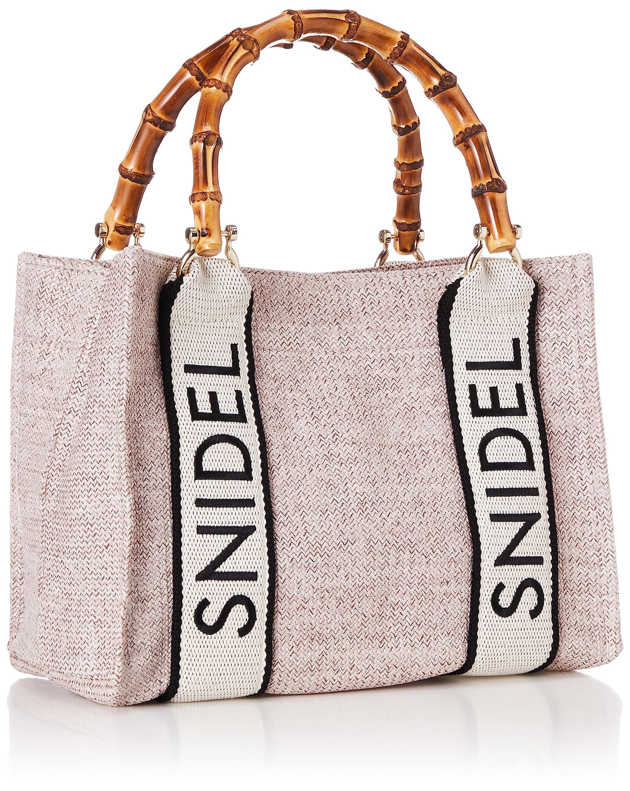 大人気の「SNIDEL」ロゴ刺繍入りバンブーバッグが夏素材で新登場。テープの素材と配色にシーズンムードをプラスしてアップグレードしました。付属のストラップを装着すればショルダーにもできる便利な2WAYデザイン。シーズンスタイルにぴったりなアイボリー、ベージュ、ライトピンクの3色をご用意しました。