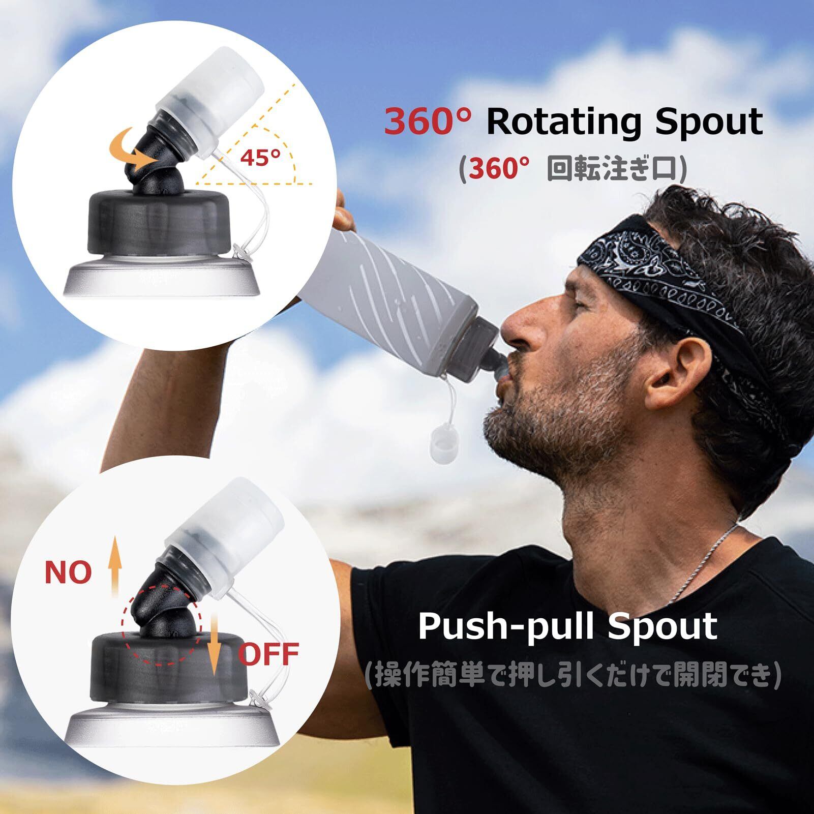 Azarxis ハイドレーション ボトル 折りたたみ水筒 TPU 水筒 携帯式ボトル ウォーターボトル スポーツボトル 防塵キャップ付き 軽量 給水用 水分補給 無毒無臭 ソフトボトル ランニング マラソン 登山 ハイキング サイクリング トララン 250ml 500ml