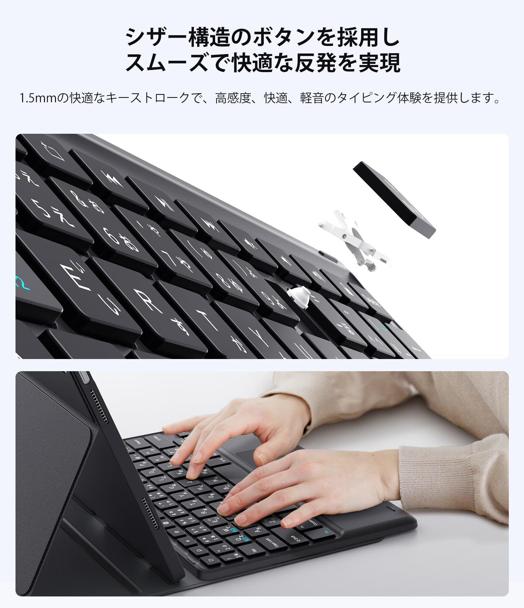 【タッチパッド付き】このipad 2022年第10世代10.9インチキーボードケースはiPadOS での作業方法を広げるトラックパッドジェスチャを使って、さらにiPadをより快適に使用します。ドキュメントの編集、アプリを操作、プレゼンテーションの作成などを快適で簡単に完成できます。ご注意:iPadOS 13.4以降がアップグレードしてください。