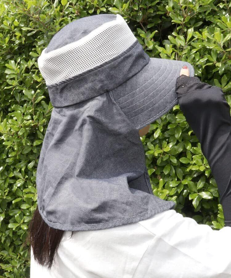 首元・口元まで隠せて顔周りを日差しからしっかりガード。