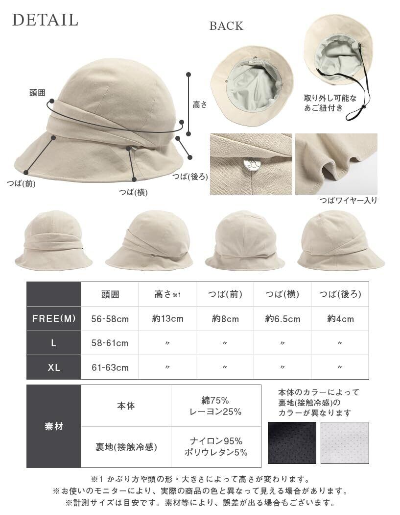 [ルーアンドシー] 帽子 レディース 大きいサイズ ライトUVエアリアルハット 接触冷感 つば広 完全遮光 ハット 紫外線対策 uvカット あご紐付き