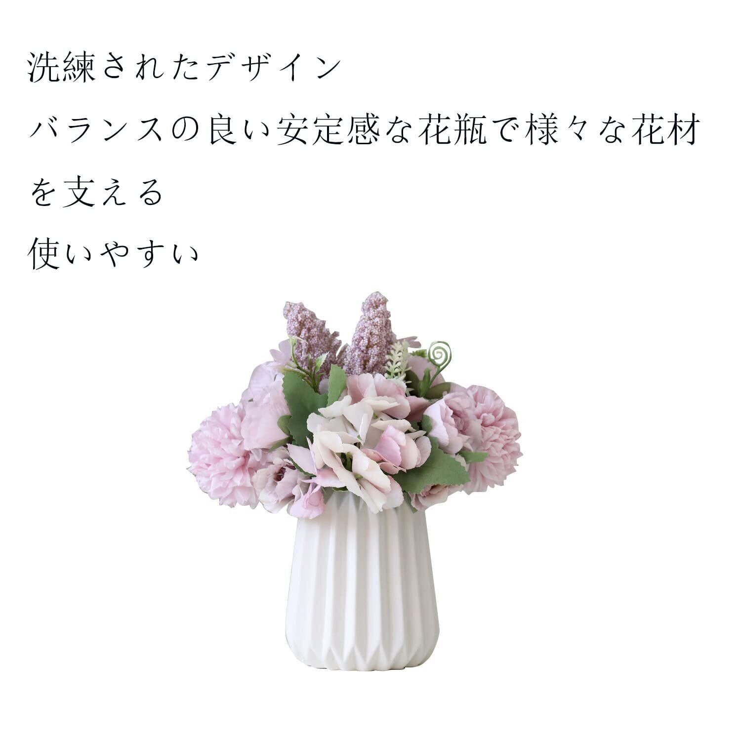 大きくも小さくもなくちょうど良い大きさのホワイト花瓶なので、季節のお花、生花、葉もの、枝もの、造花、ドライフラワーなど、どんな花材も使用可能です。