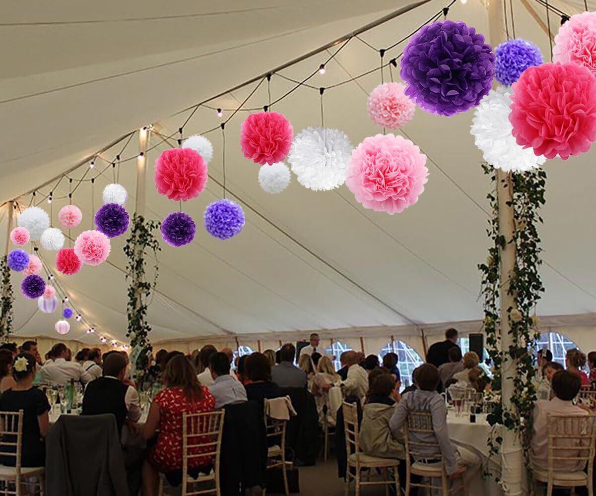 【使いやすい】ティッシュペーパーポンポンは、事前に折り畳まれ、プリカットされています。使うときに、それを開き、両面テープで両面テープで取り付けてボールを作ります。屋内屋外の居心地の良い雰囲気を作成できます。