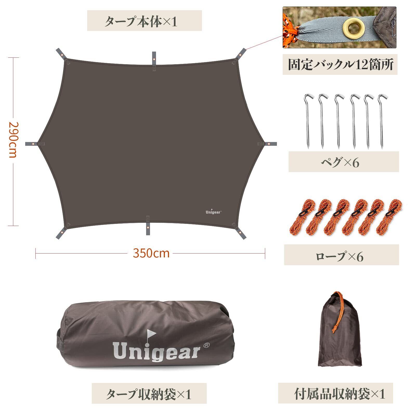 Unigear 防水タープ ヘキサ 紫外線対策 UVカット 撥水加工 軽量 遮熱性 収納ケース付き 持ち運び便利