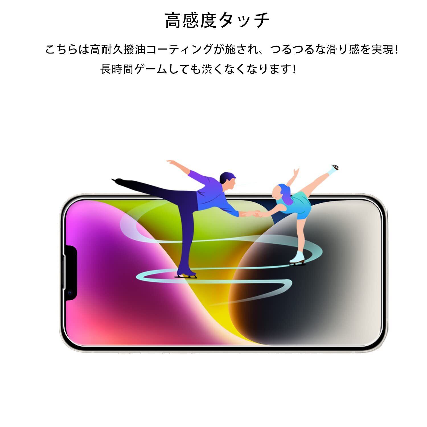 【指紋防止、高感度タッチ】iphone 14 plus ガラスフィルム には撥油コーティングが施されており、指紋や汚れなどに強くなめらかな操作感を実現、付着した汚れなどは簡単に拭きとれます。こちらは高耐久撥油コーティングが施され、つるつるな滑り感を実現!ゲームしても渋くなし!