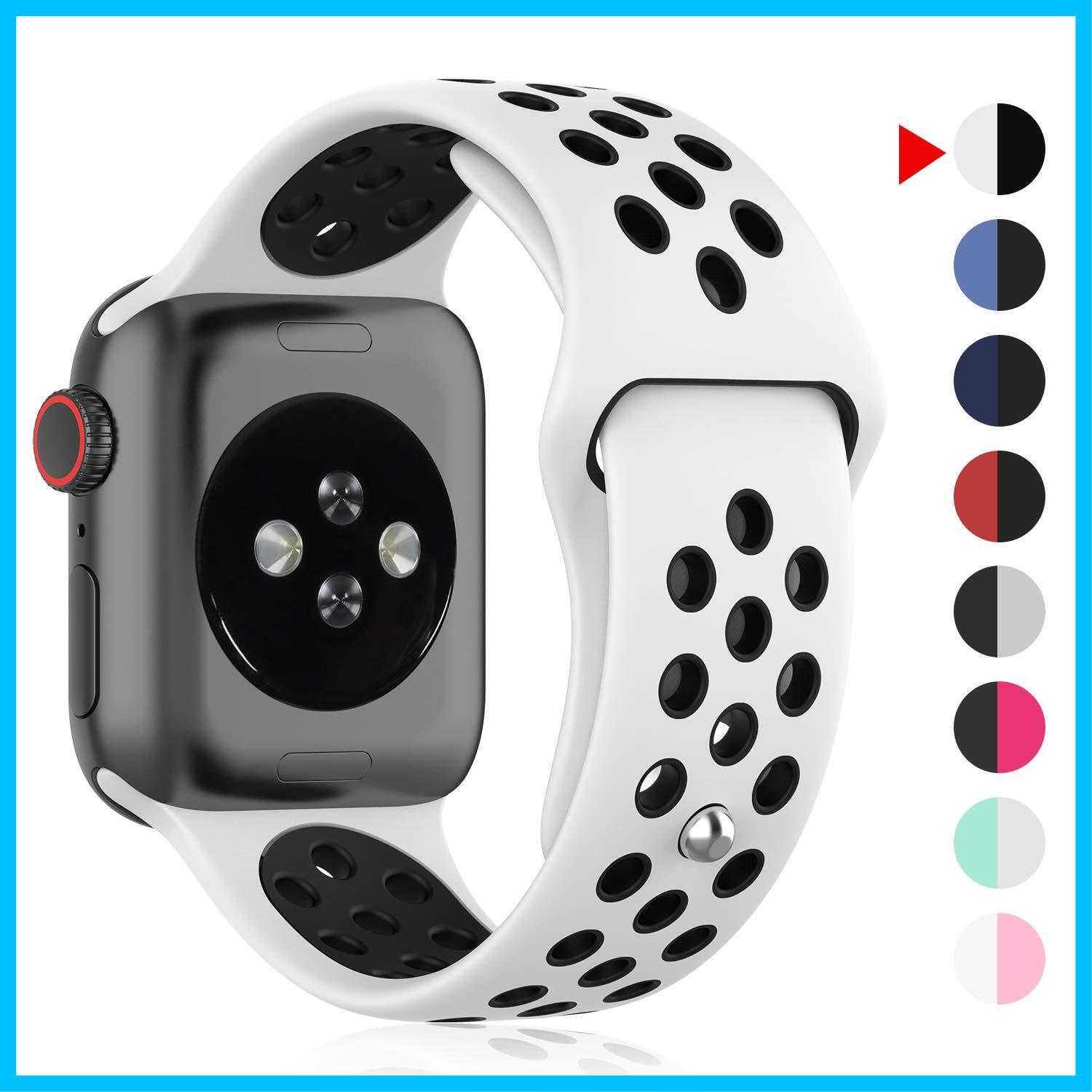 ZENGYQI コンパチブル Apple Watch バンド 38mm 40mm 41mm 42mm 44mm 45mm 49mm,ソフトシリコンバンド 通気性 スポーツシリコンストラップリストバンド交換バンドリストバンド iWatch series SE/10/9//8/7/6/5/4/3/2/1に対応 (42mm/44mm/45mm/49mm, ピュアホワイト/黒) | グランメゾンショップ
