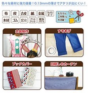 布、皮、合皮、紙、金属、ウレタンボード、木材、ゴム、ガラス、プラスチック、発泡スチロールなどを接着する事ができます