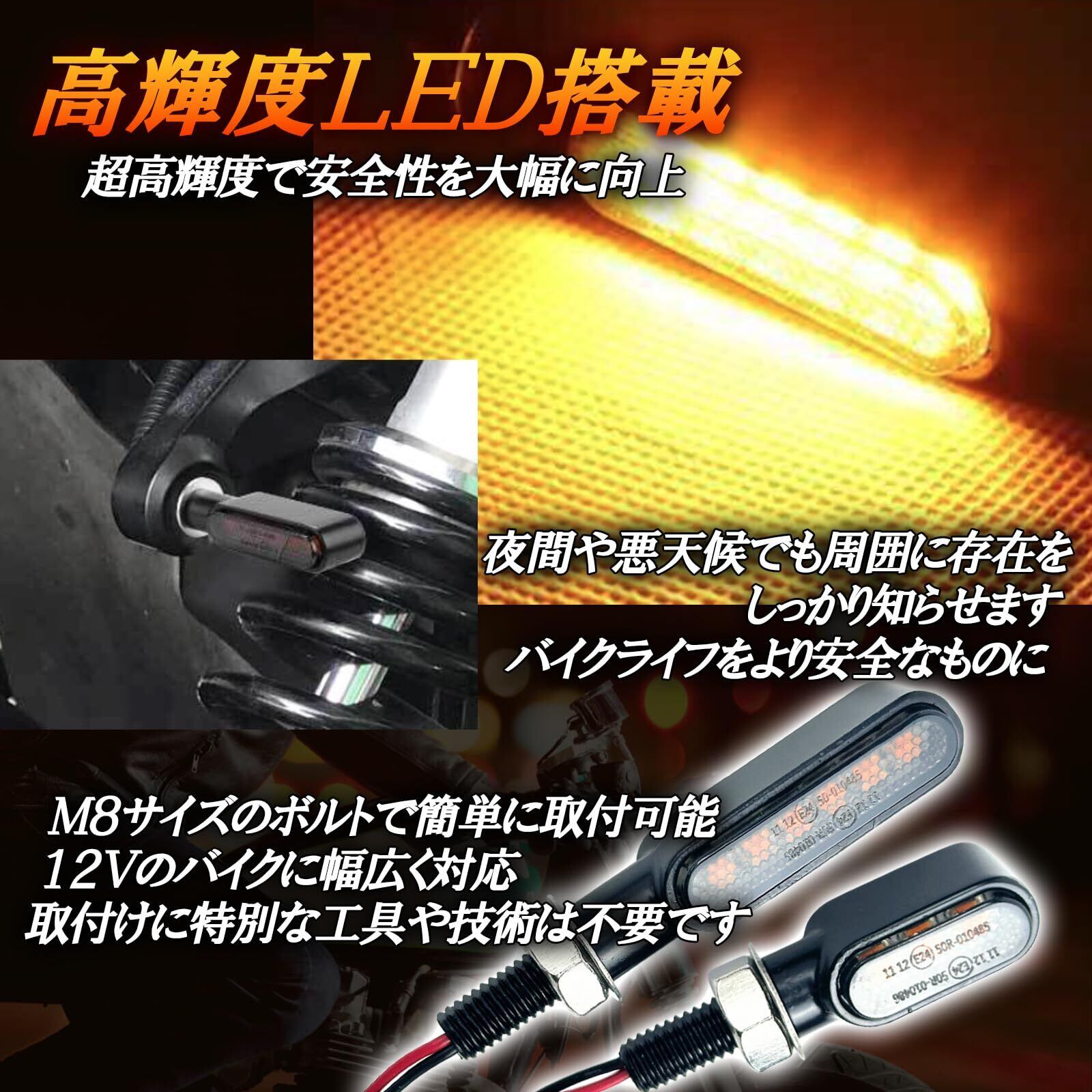 【汎用性】M8サイズのボルトで簡単に取り付け可能な汎用設計。12Vのバイクに幅広く対応し、取り付けに特別な工具や技術は不要で、DIY好きなバイクオーナーにもおすすめです。【防水設計】どんな天候にも対応する防水機能を備えており、雨の日のライディングでもウインカーの性能が落ちることはありません。水たまりや急な雨でも安心して使用できる設計で、耐久性にも優れています。