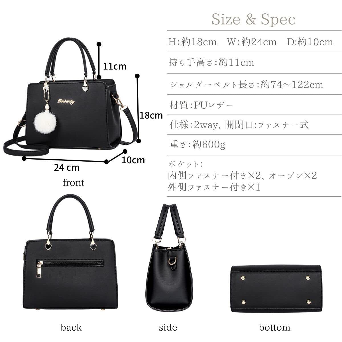 【手提げとショルダー2wayタイプ】長さ調整可能なショルダーベルト付きなので、肩がけ、斜めがけの両方で使用できます。チャームとショルダーベルトは簡単に取り外し可能。汚れや水に強いPUレザー製。【外寸サイズ】幅24cm×高さ18cm×マチ10cm(持ち手ハンドル:11cm)