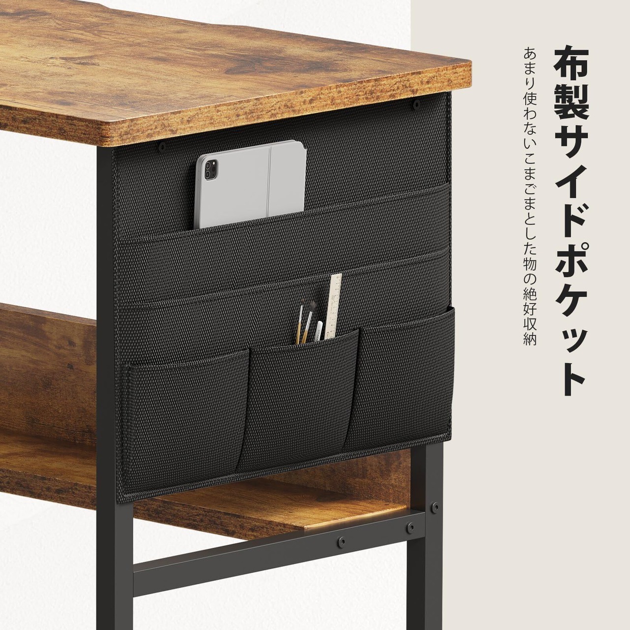 【収納性抜群】収納一体型で空間利用率UP!机の下にラック、イヤホンフック、サイドポケットも備え、本、辞書、CDなどの収納にとても便利です。仕事用のpcデスクだけでなく、子供の勉強机としても最適です。