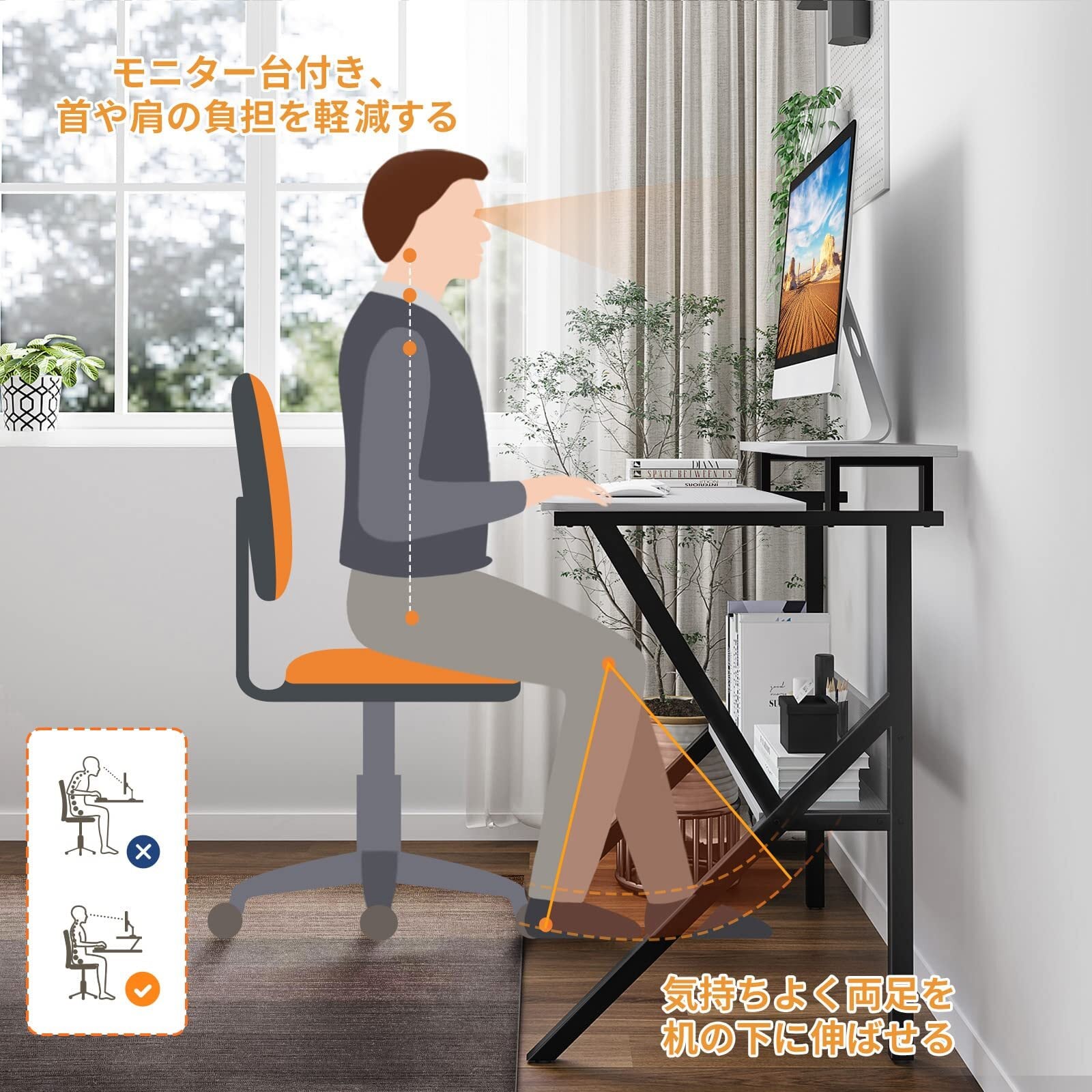 【モニター台付き、卓上の使用面積を広げる】上部のラックは正しい座り姿勢に導いて、首や肩への負担を軽減して、長時間座ってもラクラク~2段構造の板なので、実の使用スペースは同じの奥行の天板よりもっと大きく、仕事の効率が大幅にアップ。