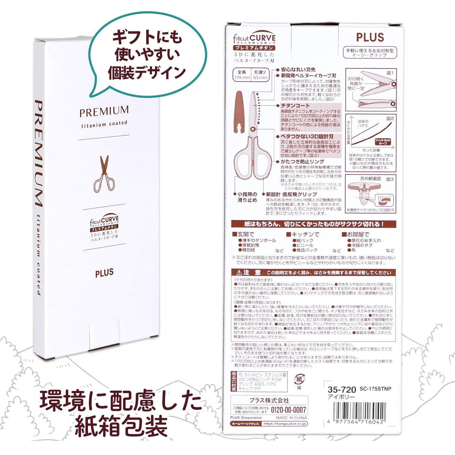 プラス はさみ 汚れ・サビに強い フィットカットカーブ プレミアムチタン ベタつかない 30度 切れ味継続加工 紙箱包装 アイボリー 35-720
