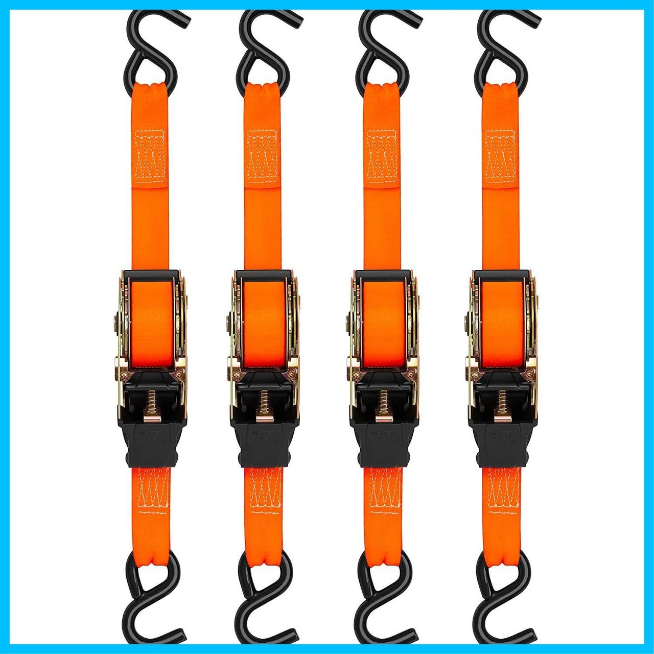 Runbod ラッシングベルト ラチェット式ベルト 荷締めベルト 荷物固定ベルト 5m 黒 ラッシング幅2.5cm 破断荷重約800kg 4本組 オレンジ