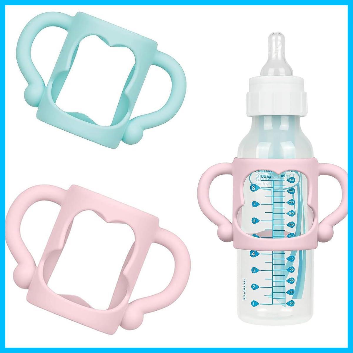 2個セット 哺乳瓶ユニバーサルハンドル 哺乳びん握り 広口グリップ 多色 多機能 耐熱 シリコン ソフトハンドル 持ちやすい 赤ちゃん 付け替え用 哺乳瓶アクセサリー(ブルー+ピンク)
