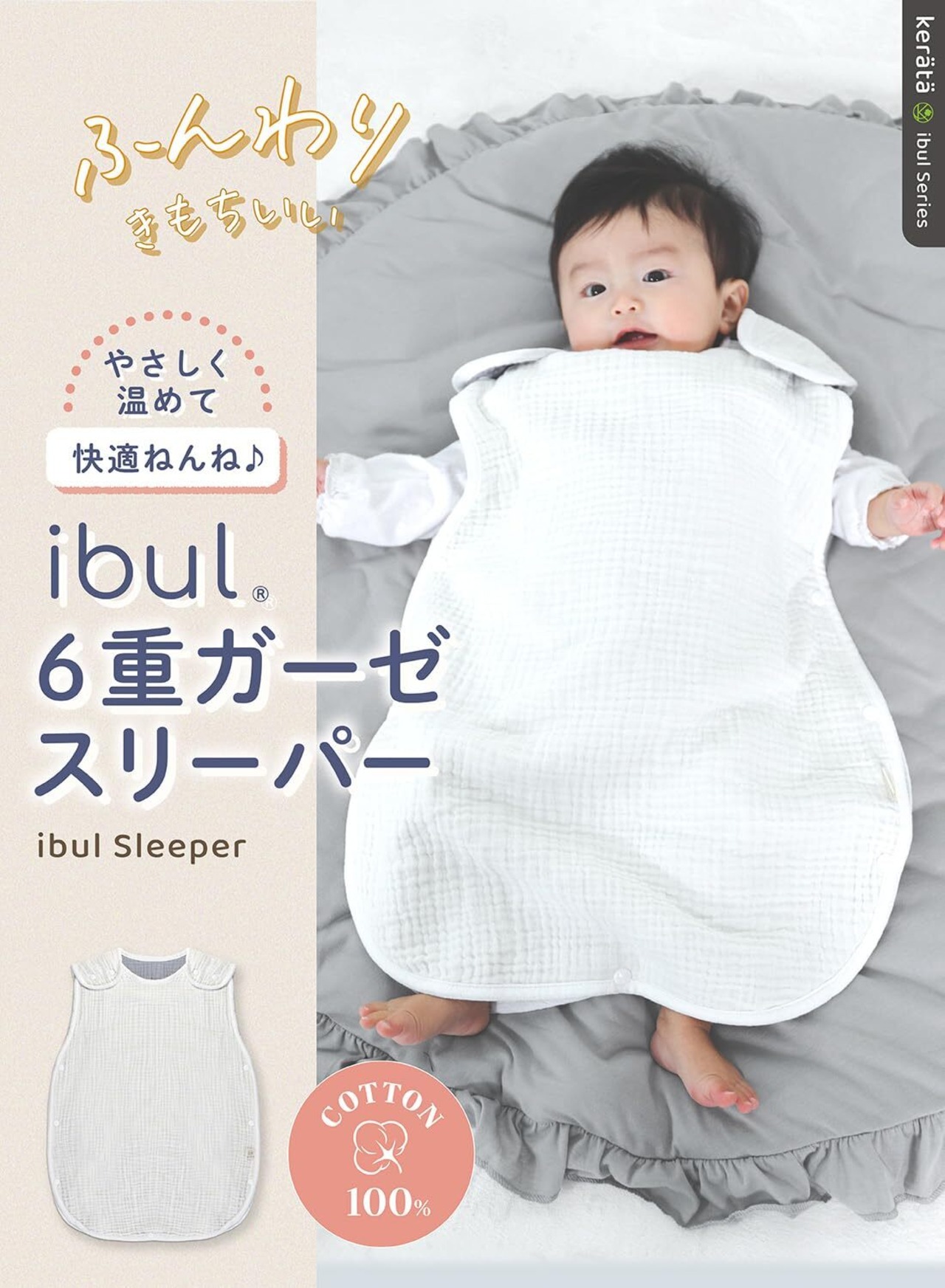【イブルガーゼ】韓国発祥の寝具「イブル」をモチーフにデザインしたガーゼシーリーズ“ibul(イブル)”。イブルの優しい風合いを生かしたイブルガーゼでスリーパーを作りました。