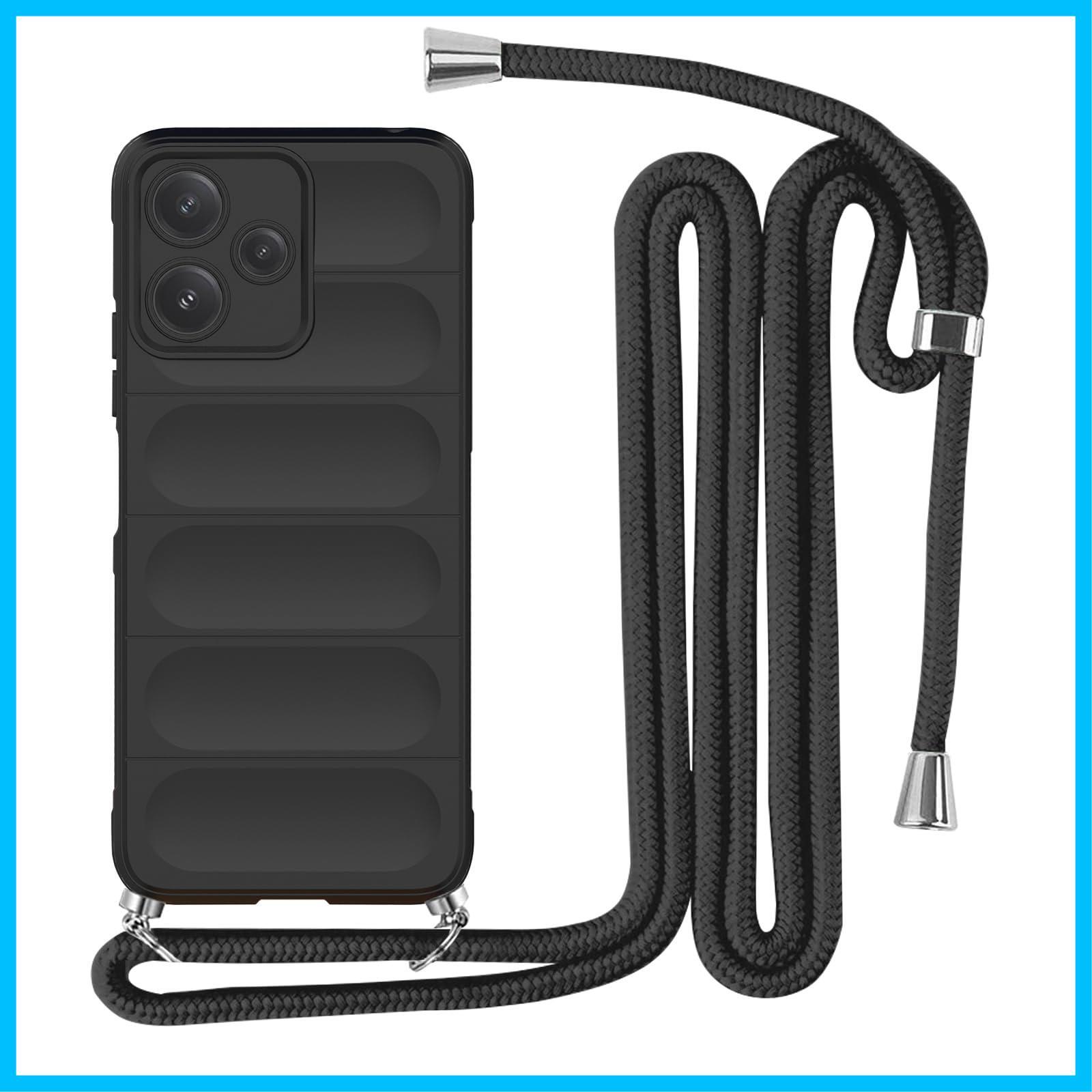 Redmi 12 5G ケース ネックストラップ 耐衝撃 肩掛け 斜めかけ 首掛け 縄掛け カバー Redmi 12 5G XIG03 スマホケース シリコン TPU ストラップ付き 軽量 長さ調整可能 取り外し可能 指紋防止 落下防止 衝撃吸収 ワイヤレス充電対応 Redmi 12 5G カバー【縄掛け-ブラック】 | グランメゾンショップ