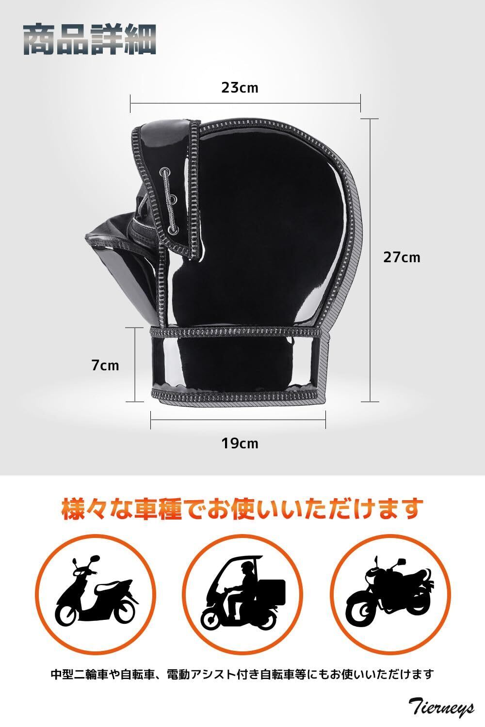 Tierneys [ティアニーズ]バイクグローブ ハンドルカバー 自転車ハンドルカバー 防寒 防水 防風 対策 スクーター 自転車 PUレザー製 (黒)