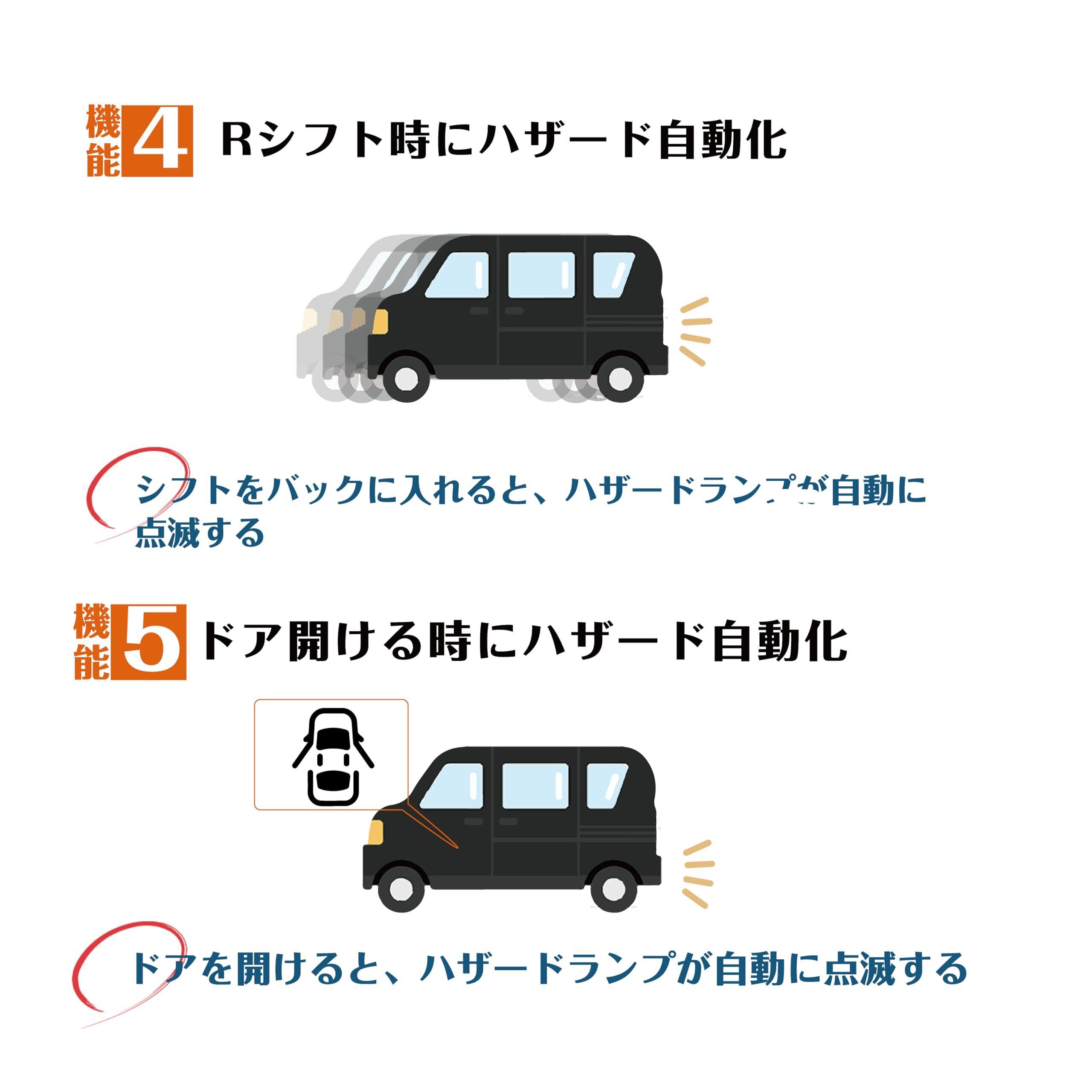 安全性&便利性アップ:ドアロックとハザードをオート化になり、安全性と便利性が向上します!
