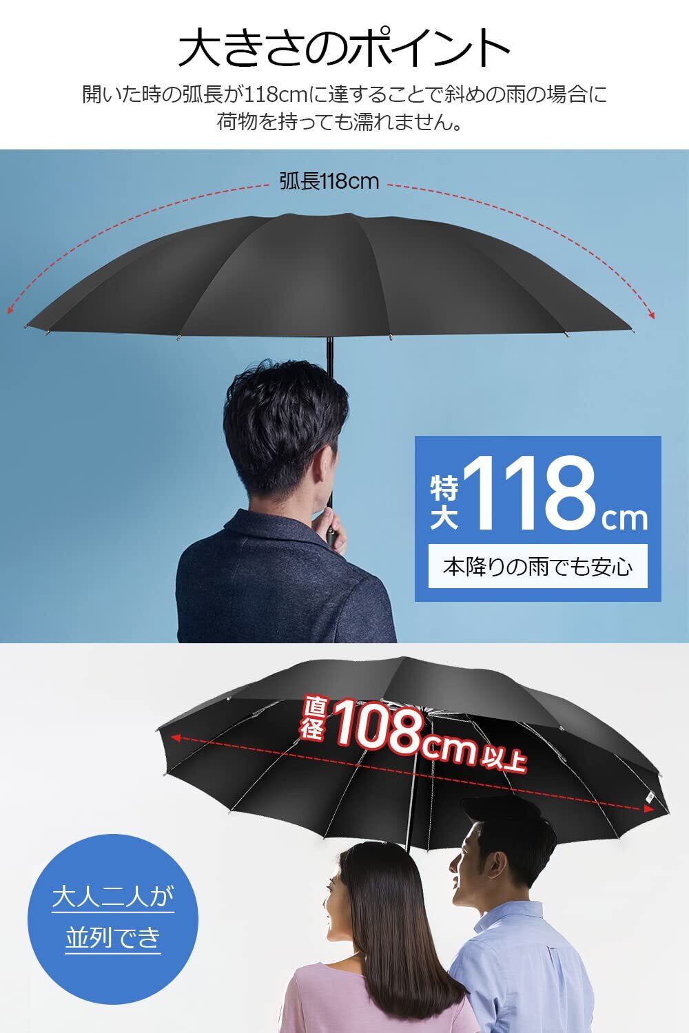 【強靭な12本骨耐強風設計】柔軟性と強度を兼ね備えた12本骨を採用し、風に対する耐性と耐久性が向上しています。さらに、錆びにくい防食加工が施された傘のフレームは非常に頑丈で、強風や激しい雨にも耐えられ、折れたり曲がったりしにくい設計です。万が一強風でひっくり返ってしまっても風の力を受け流し、傘を閉じるだけで簡単に元に戻ります。風が強い日でも心強い耐風傘です。