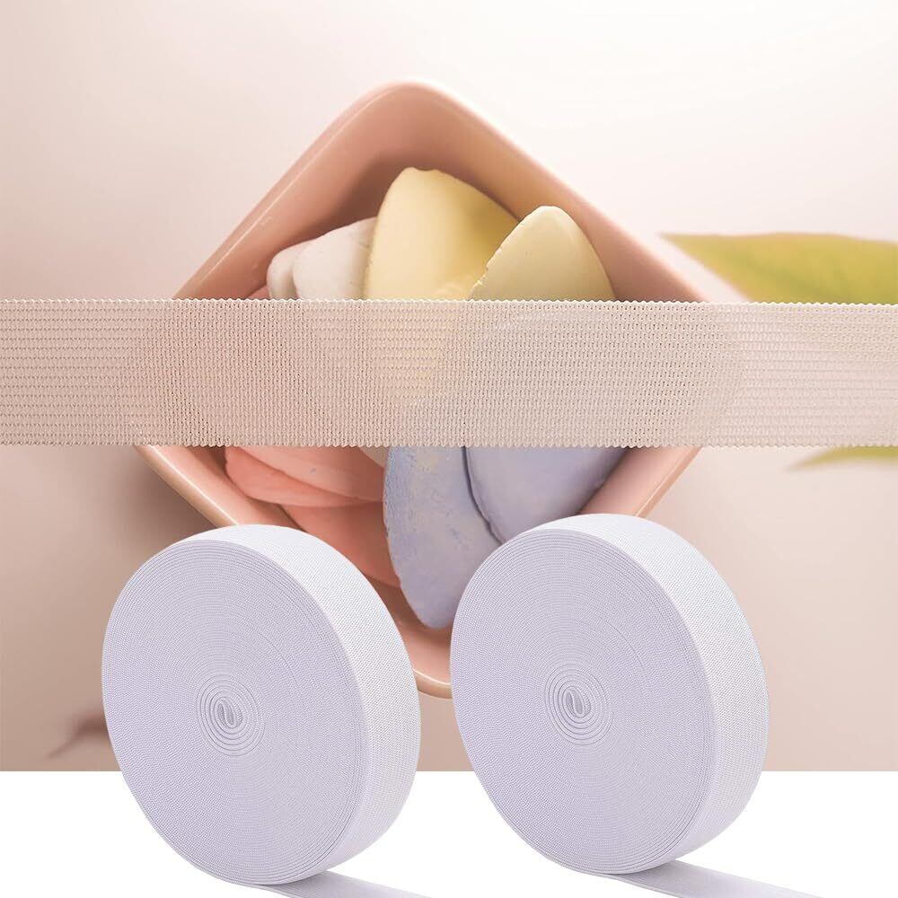 KALOLINNA 平ゴム 弾性バンド ウエストゴム サイズ 調整 調節 織りゴム ゴム紐 裁縫 手芸 材料 パンツのゴム 裁縫 ツール(25mm*10m,ホワイト)