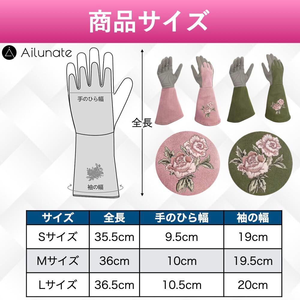[Ailunate] ガーデングローブ 園芸用手袋 バラ ロング トゲ防止 革 ガーデニンググローブ おしゃれ レディース (Sサイズ, オリーブ)