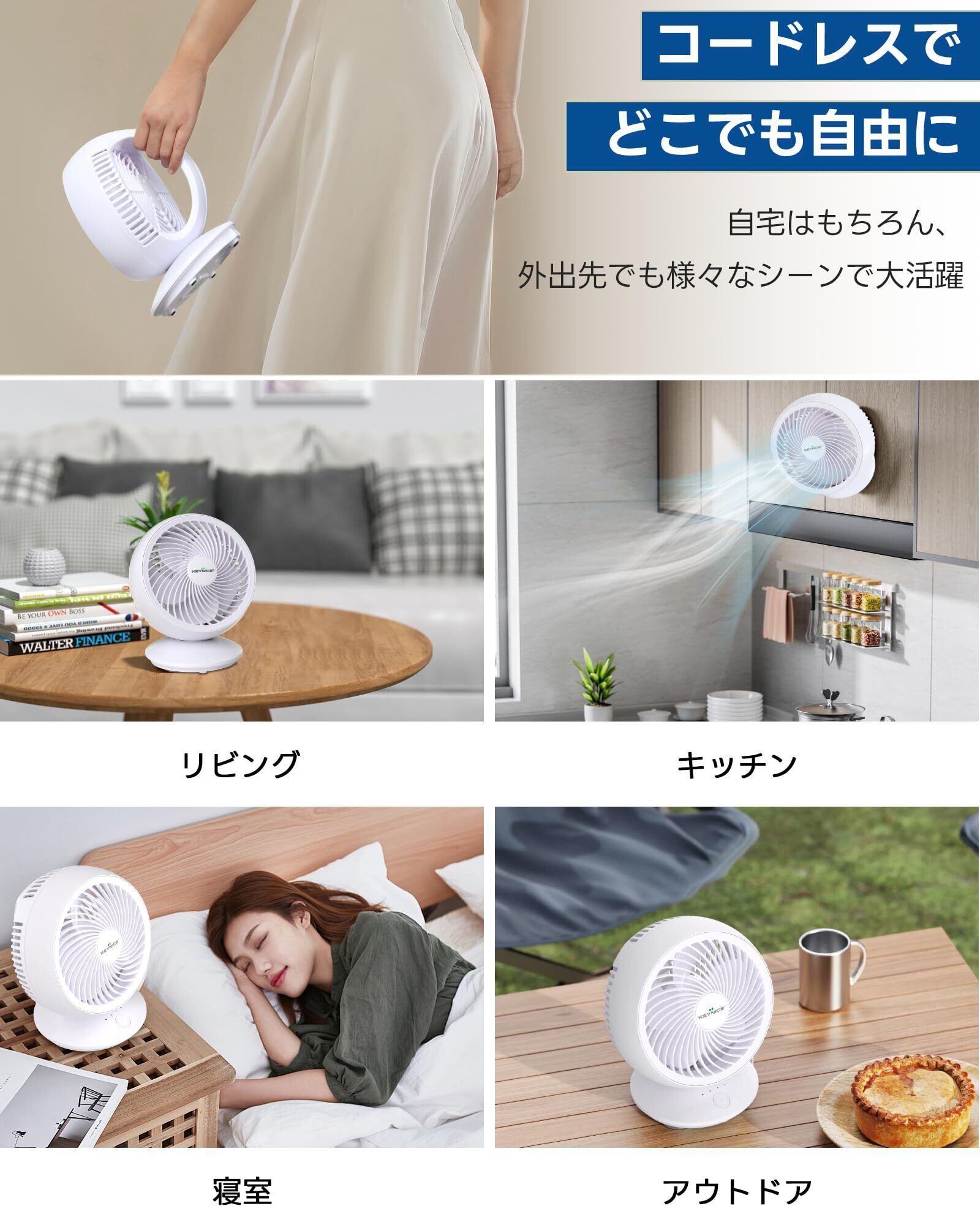 【猛暑対策】KEYNICE サーキュレーター 扇風機 静音 左右首振り 壁掛け dcモーター コードレス 4000mAh大容量 usb充電式 卓上扇風機 リビング 小型 パワフル送風 軽量 風量3段階調節 8畳 5枚羽根 空気循環 冷房 部屋干し 換気 梅雨对策 衣類乾燥 省エネ コンパクト 洗える KN-1762 ホワイト