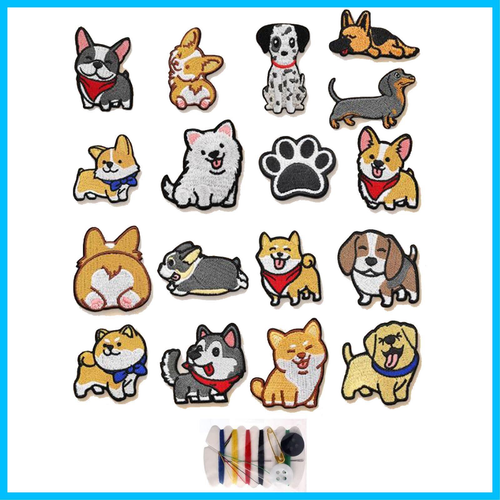 サムコス 刺しゅうパッチ アイロンワッペン 17個入り アニメ動物 刺繍模様 ファッション かわいい ファッション 個性 多種多様なデザイン DIY装飾 パッチ アクセサリー ダウンジャケット ズボン本 ぼうし 衣類 飾り(犬)