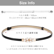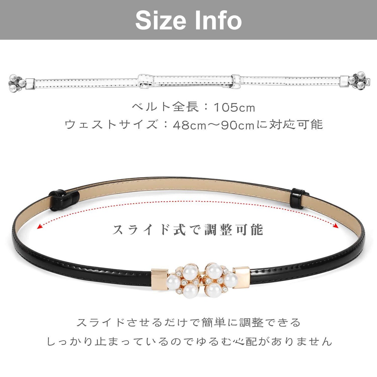 [JASGOOD] 細ベルト レディース スカートベルト エナメル ウエストマーク スライドベルト パール パーティ ウェディング 結婚式 ドレス ワンピース コーデ サイズ調整可能(ジャスグッド) ブラック