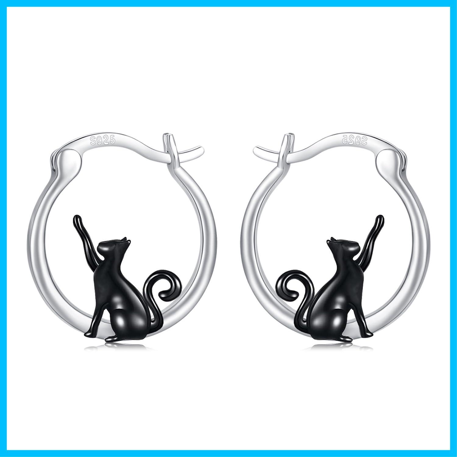 【黒猫ピアス】何かを掴むみたいに手を差し伸べたクロネコをモチーフに作ったアニマルリングピアスです。横側から見る独特なデザイン、側な人にアピールする可愛さ。