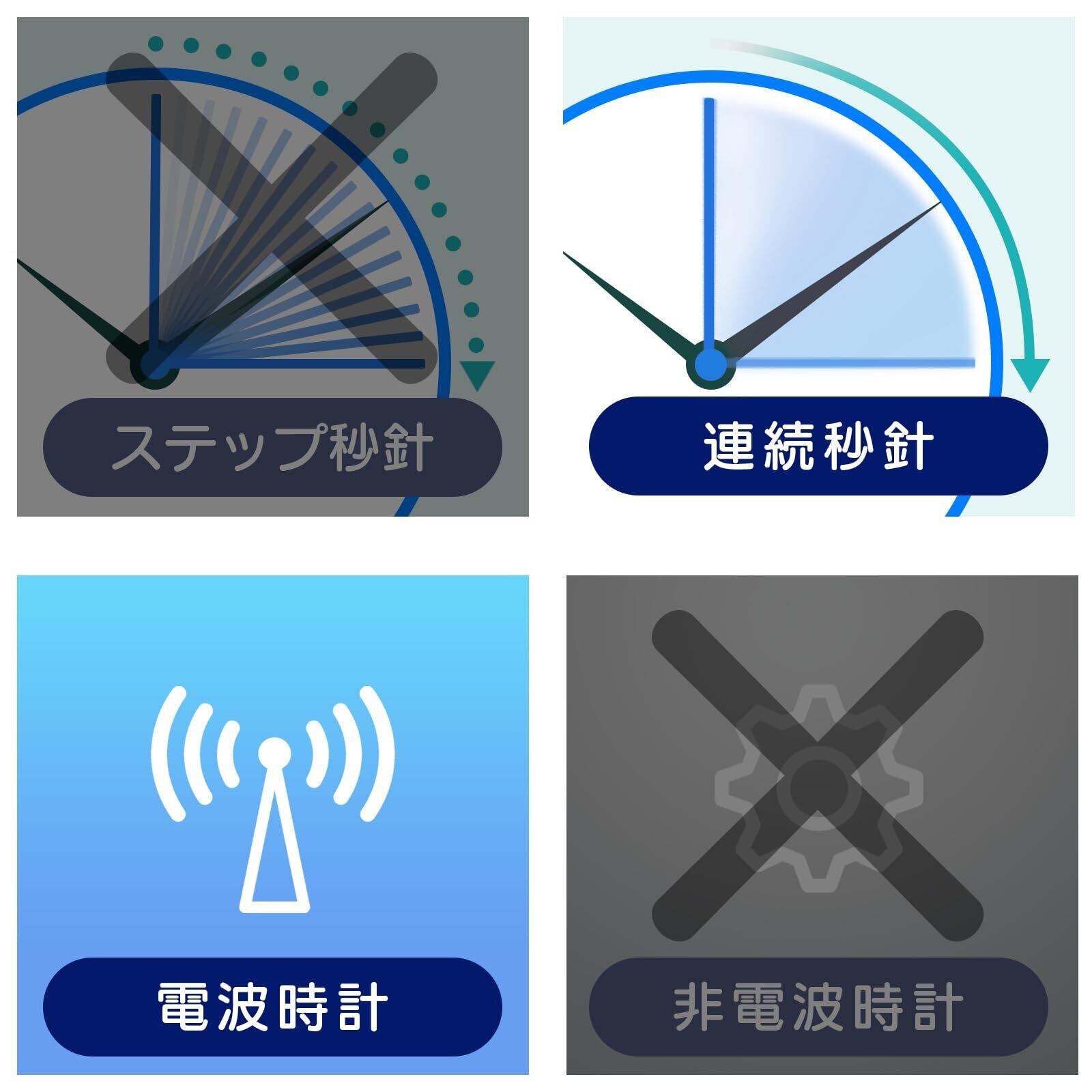 機能:電波時計、連続秒針、電波受信ON/OFF機能