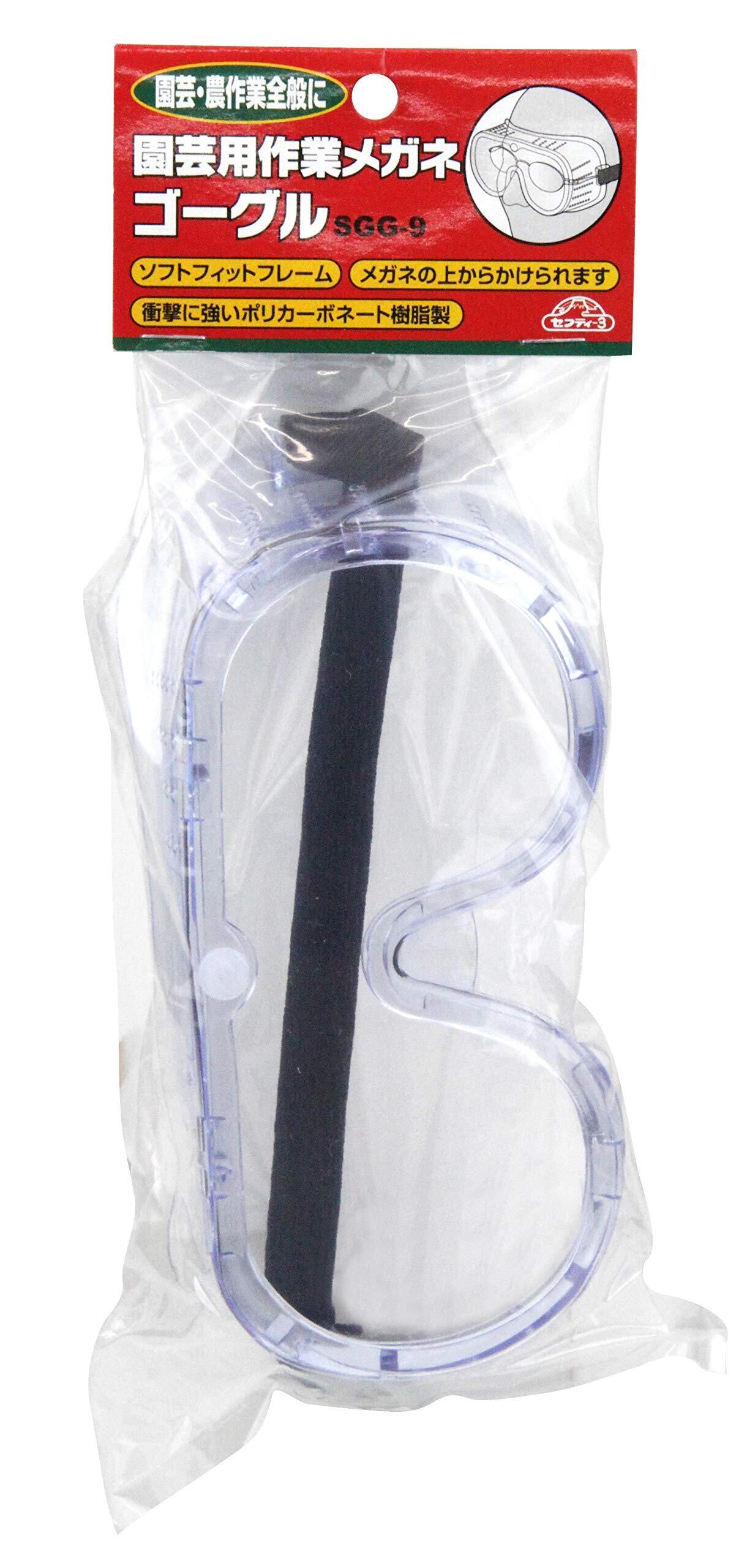 セフティー3(Safety-3) 園芸用作業ゴーグル ソフトフィットフレーム SGG-9 オーバーグラス対応 クリア