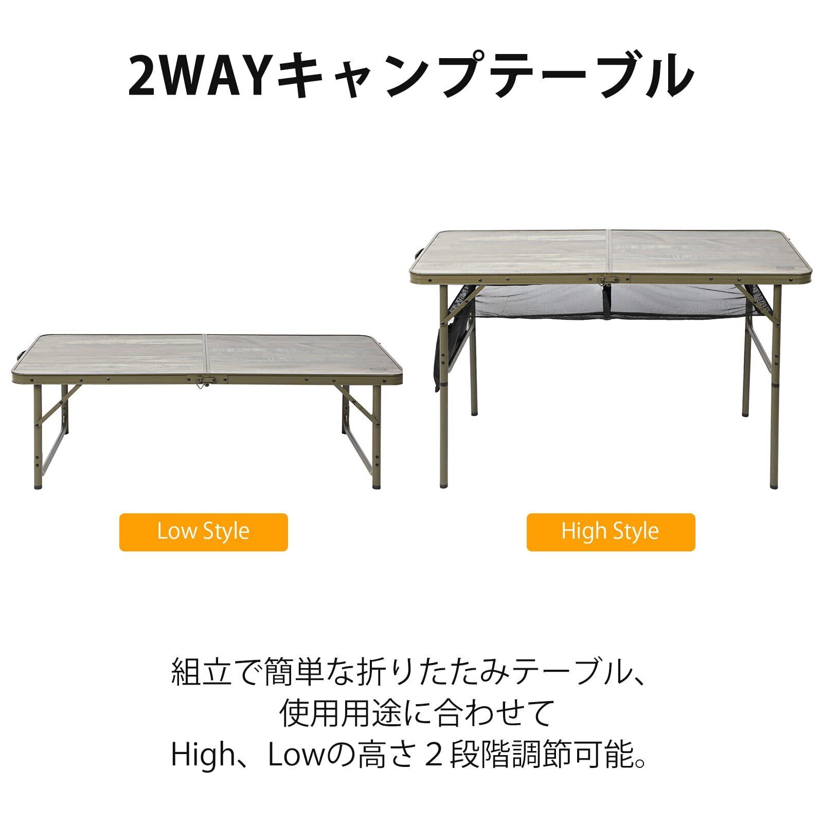 TIMBER RIDGE テーブル アウトドア 折りたたみテーブル 高さ2段階調整可能 120X60cm キャンプ用 ピクニック レジャー アルミ製 ファミリーサイズ