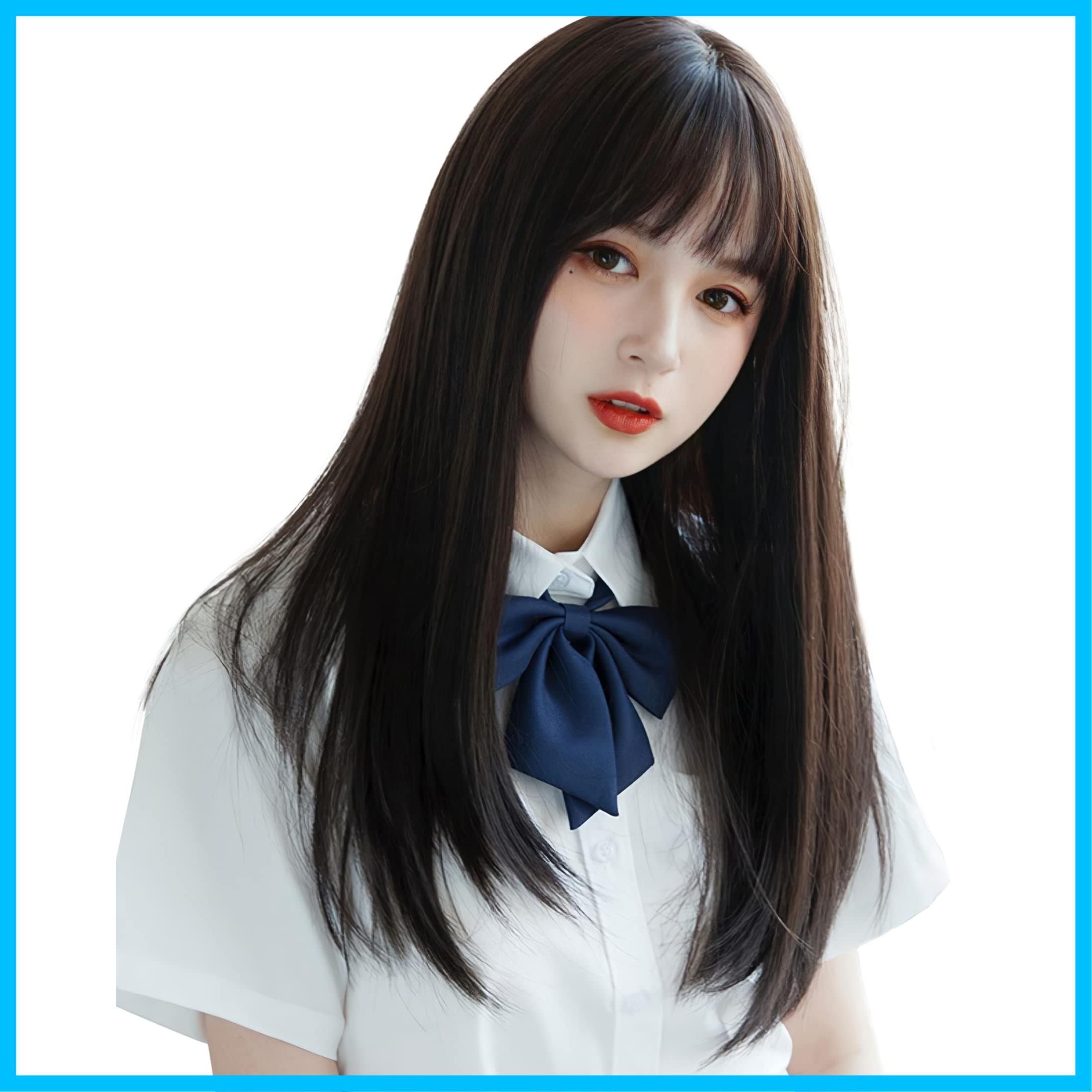 [Limakara] ウィッグ セミロング グラデーション ストレート ぱっつん フルウィッグ かつら レディース wig 自然 小顔 黒茶色