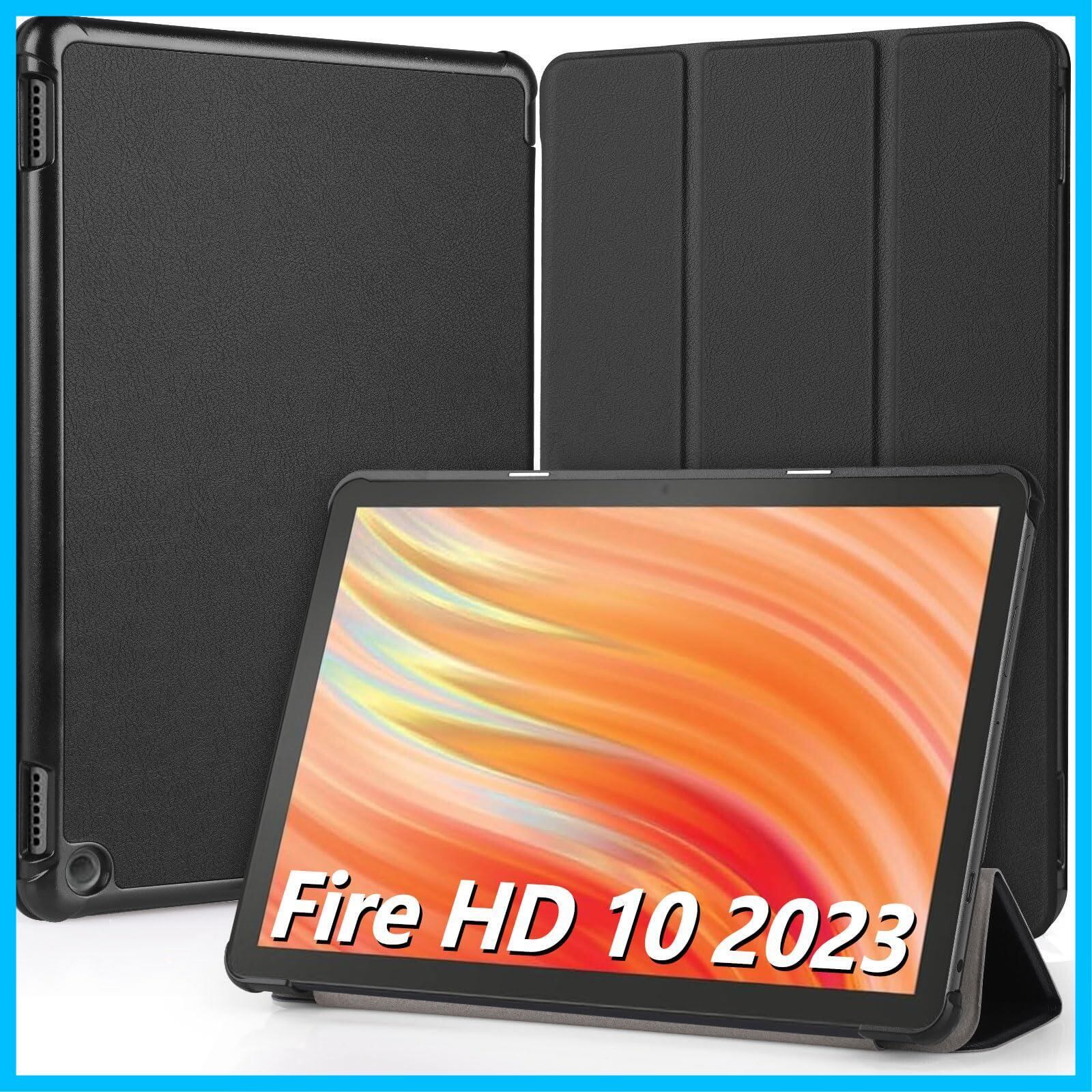 Hianjoo Fire HD 10 2023 対応 ケース 10インチ タブレットケース Fire HD 10 第13世代 対応 カバー スタンド機能付き オートスリープ機能 全面保護ケース 耐衝撃 擦り傷防止 - ブラック