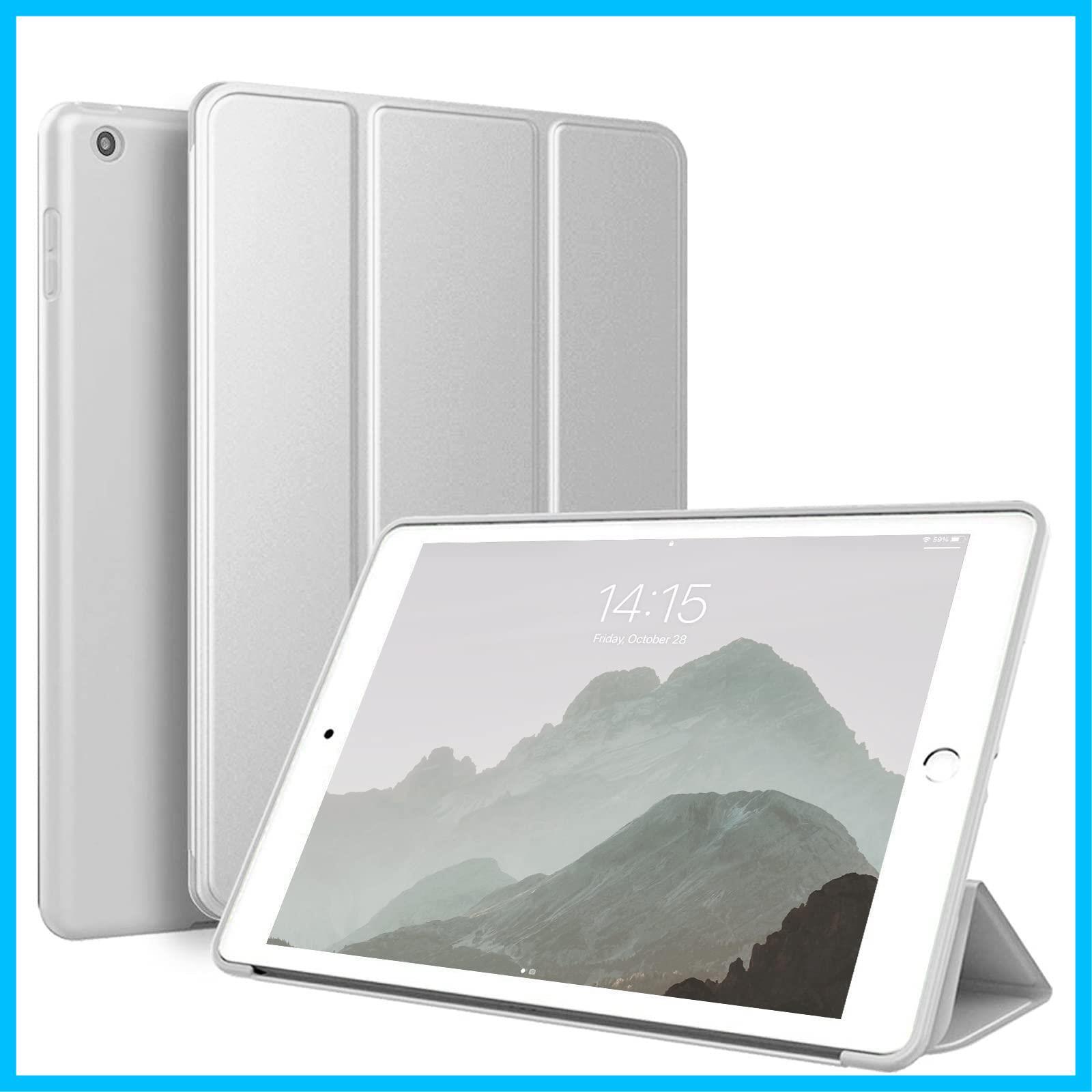 KenKe 新型 iPad 9.7 インチ 2017/2018 ケース 超軽量 柔らかいシリコン PU材質カバー 3段階折り畳み可 スタンド マグネット付き 自動スリープ機能 A1822 A1823 A1893 A1954 iPad 第5世代/ 第6世代 に対応 (ライトグレー) | グランメゾンショップ