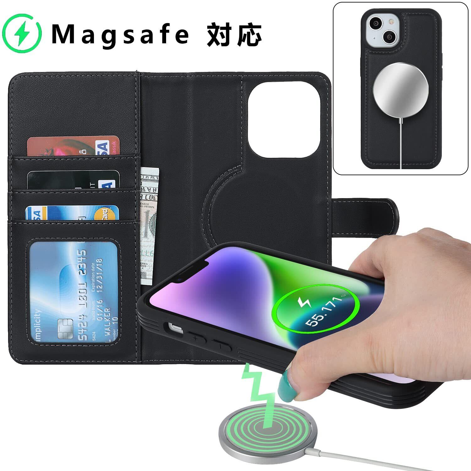 Havaya いphone14 ケース 手帳型 いphone13 ケース 手帳型 MagSafe対応 いphone13 ケース カード収納 マグセーフ 【分離式2in1】 ワイヤレス充電対応(アイフォン13 /あいふぉん13/いphone14/アイホン14 6.1インチ対応)-ブラック