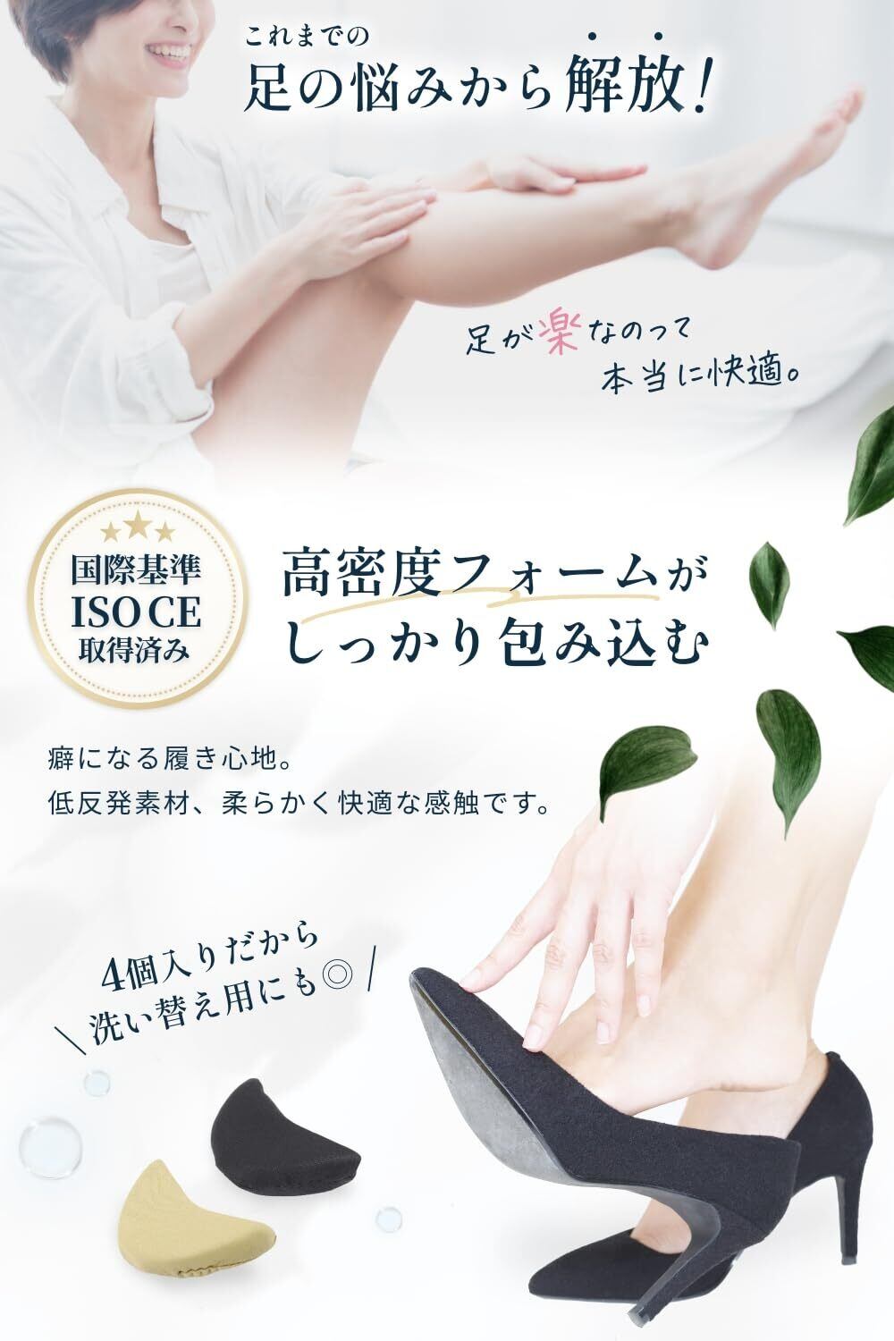 【国際基準ISO CE規格 取得済】爪先クッション 靴サイズ調整 4個入り 靴擦れ防止 つま先用インソール パンプス [衝撃吸収 高密度フォーム採用 つま先クッション] (ブラック, 4個入り) | グランメゾンショップ