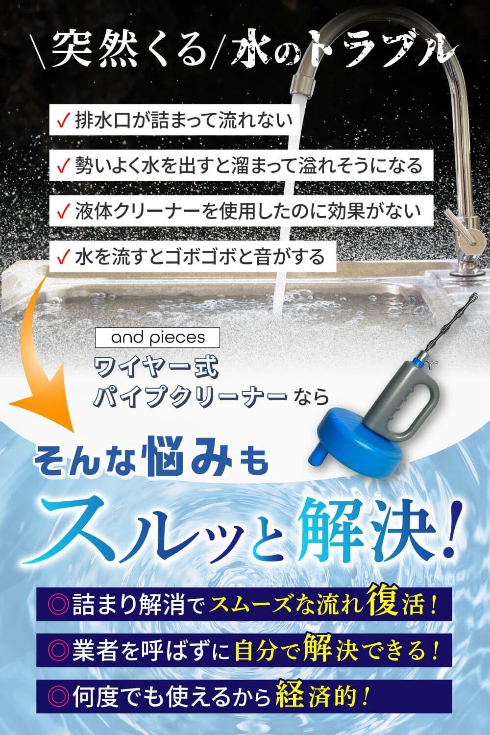 and pieces パイプクリーナー ワイヤー 【プロも絶賛】 排水溝 つまり 排水管 掃除 排水口 ワイヤーブラシ 5m / 10m (5m)