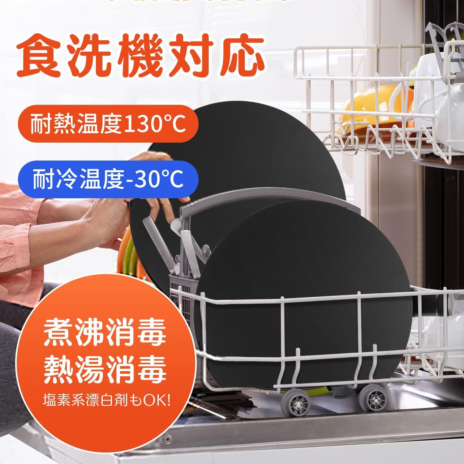 Rockykeyまな板 丸いまな板 両面利用 エラストマー まないた 食洗機対応 高級耐熱まないた 抗菌 カッティングボード 約35×29cm 軽い 黒