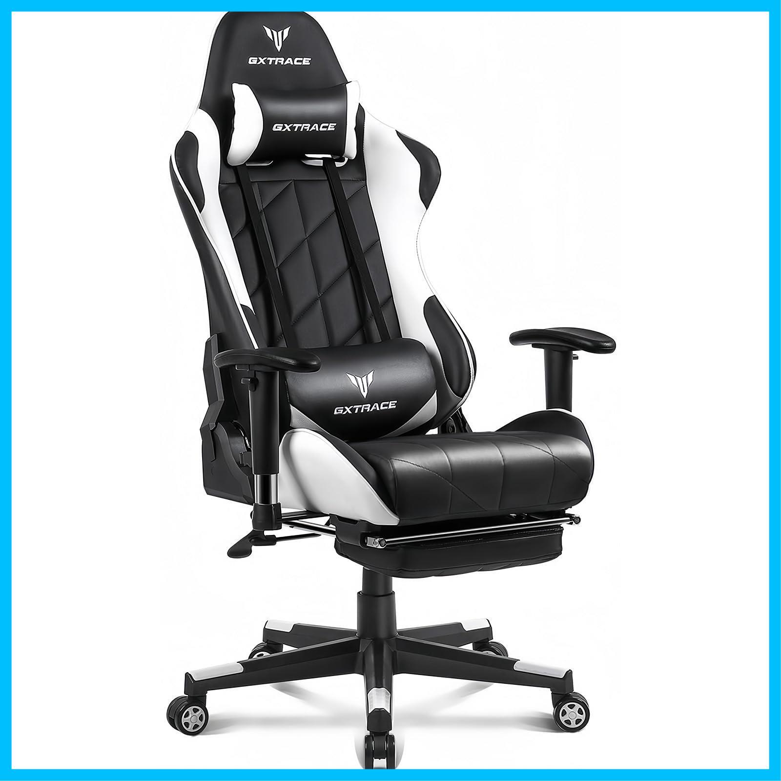 GXTRACE ゲーミングチェア ゲームチェア デスクチェア パソコンチェア オットマン付き オフィスチェア 人間工学 165度 リクライニング ハイバック テレワーク 椅子 PCチェア (White)