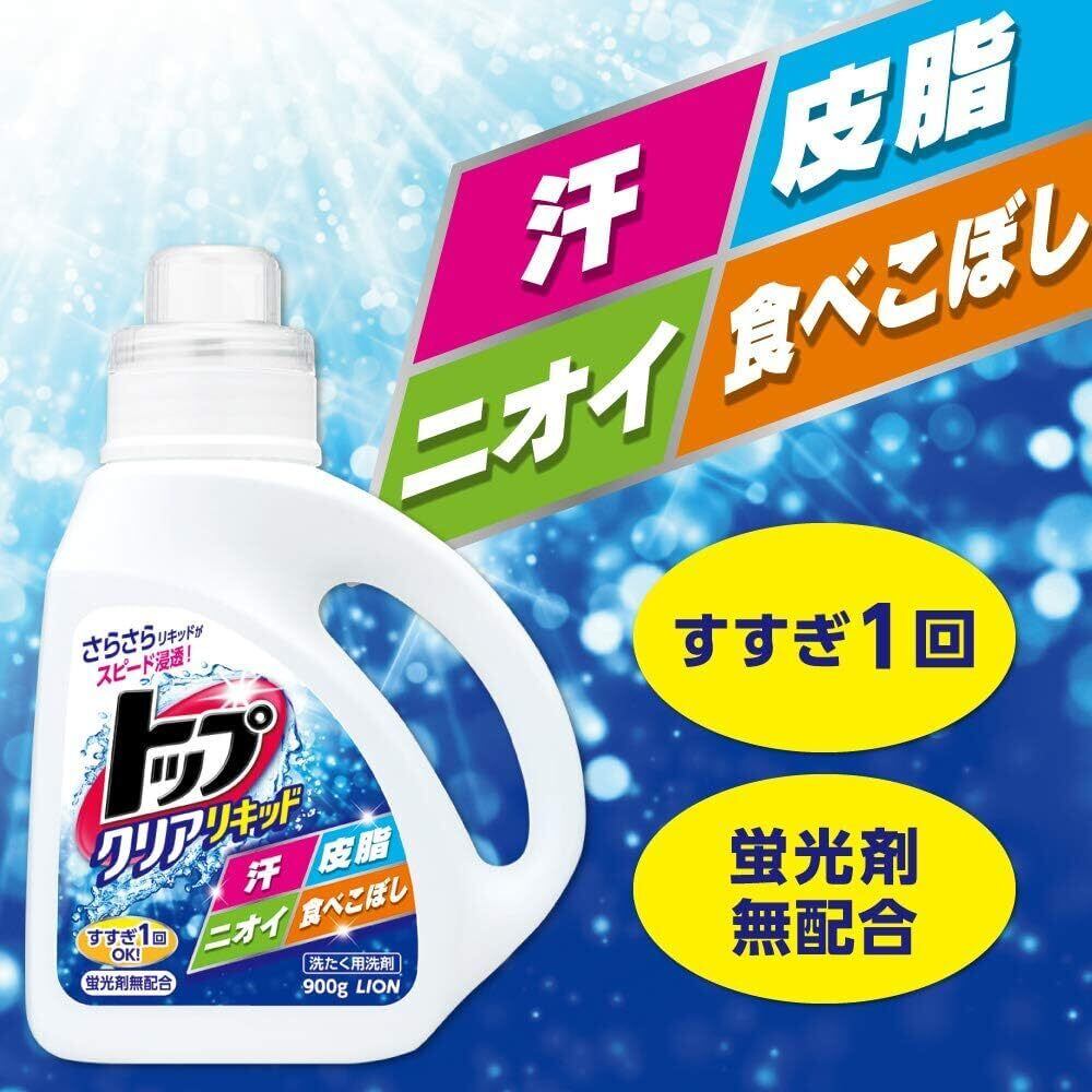 ライオン トップ クリアリキッド 蛍光剤無配合 洗濯洗剤 液体 詰め替え 超特大 900g 4袋セット