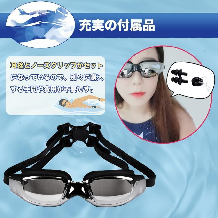 [Fincy Palmoo] ゴーグル水泳大人 - スイミングゴーグル UVカット 曇り防止 鼻ベル トスイムキャップ 耳栓 付き フィットネス 海水浴 水泳 競泳 水中眼鏡 スイミング ゴーグル ベルト調節可 (シルバー)