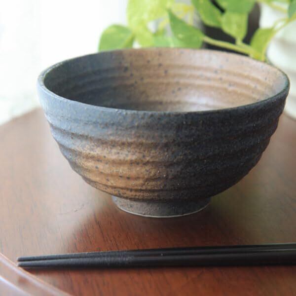 お茶碗 黒備前風ご飯茶碗 大 2個セット 美濃焼 直径12.5cm 高さ6.8cm 330ml 食洗機 電子レンジ対応 お米がこびりつきにくい 陶器
