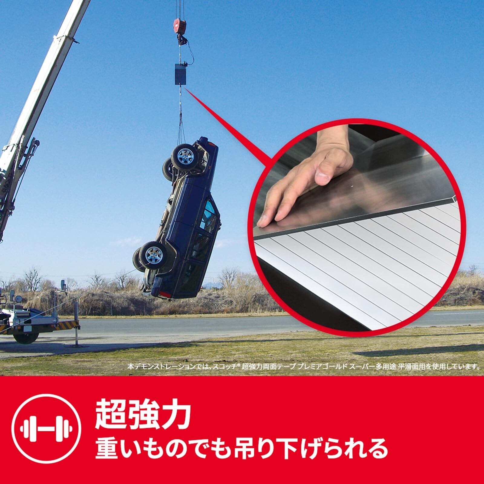 強靭なアクリルフォーム基材に、特殊アクリル系粘着剤を塗布したスコッチ(R)の超強力両面テープです。素材の変形や縮みにも良くなじみ、粗面に対して良好な接着力を発揮します。
