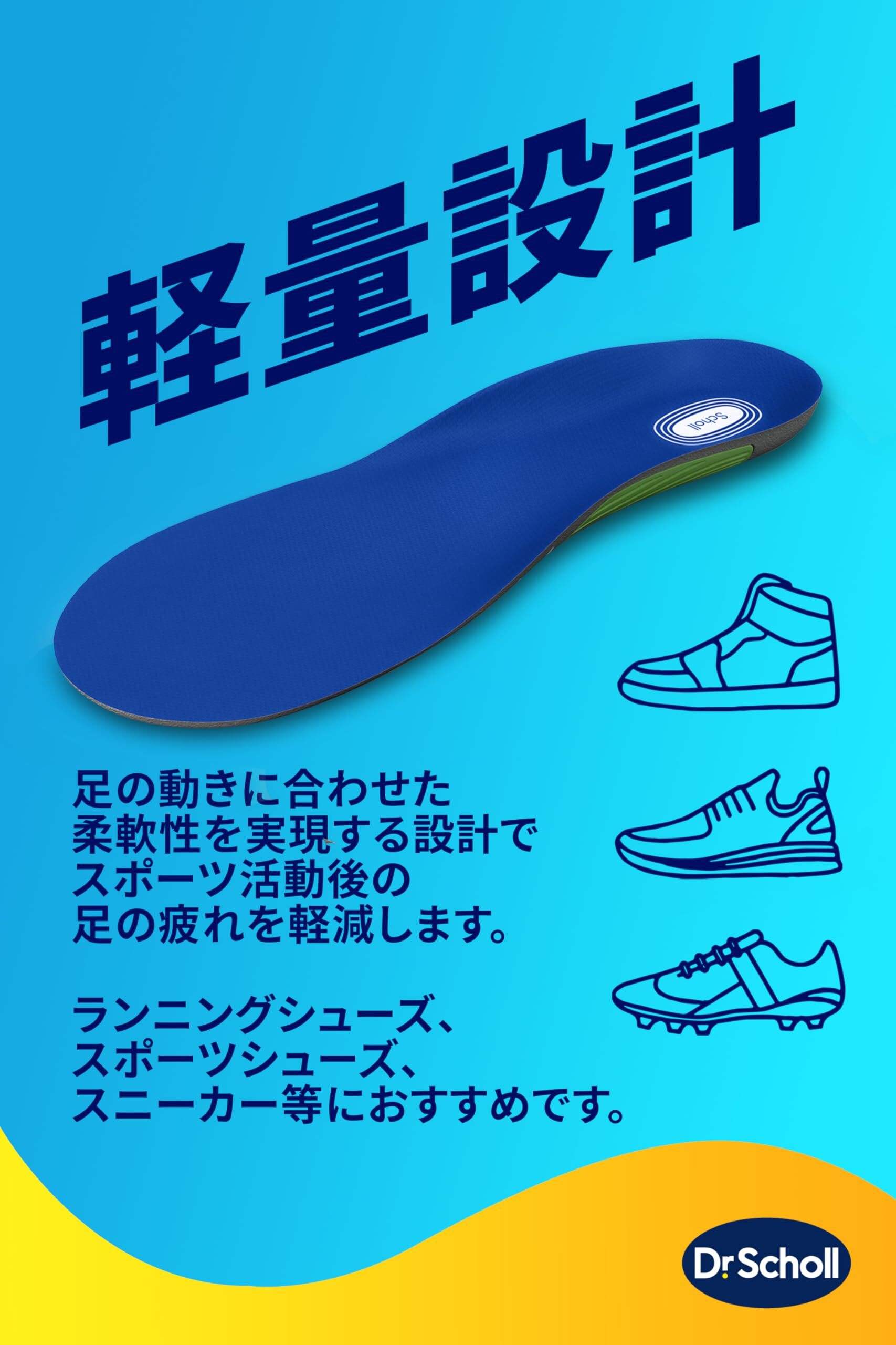 ●インソールをお使いの方は、ご使用のインソールを取り外し、ドクター・ショールジェルアクティブ™インソールをジェルの面を下にしてご使用ください。インソールが磨り減っている時は交換してください。6ヶ月毎の交換をお勧めします。