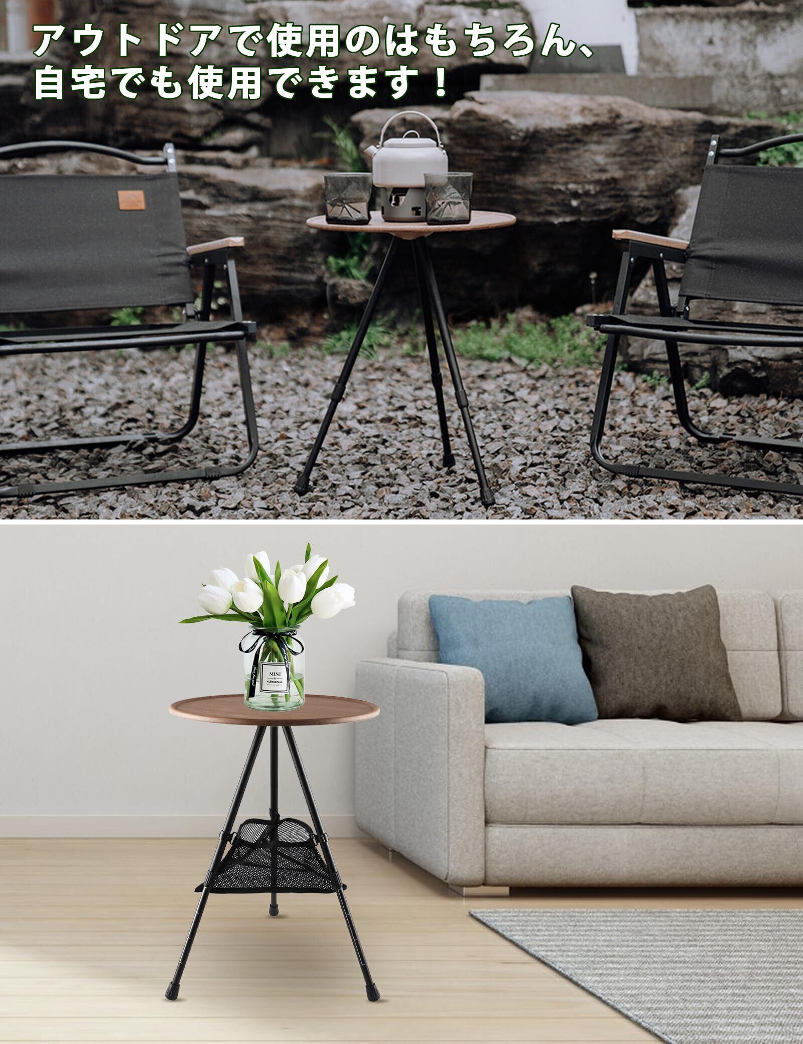 キャンプ テーブル 折り畳み アウトドア テーブル コンパクト ミニテーブル 折りたたみ ベランダ/ガーデン/屋内/屋外 サイドテーブル 高さ調整 釣り/登山/ソロキャンプ/バーベキュー/焚き火テーブル 収納バッグ付き 持ち運び (木目)