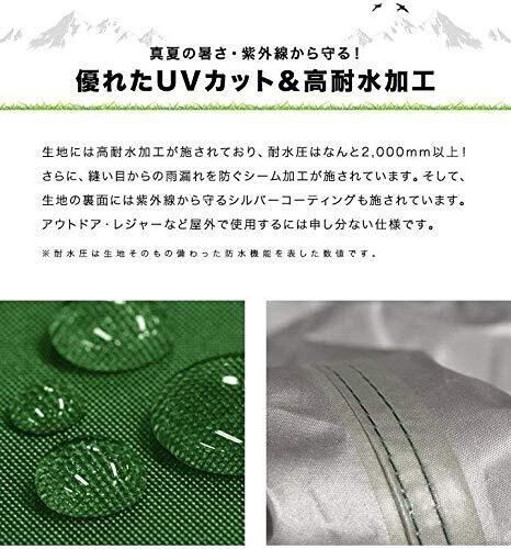 耐水圧 2,000mm以上 付属品 ・ロープ ・ペグ ・専用サイドシート(1枚) ・専用収納ケース ・取扱説明書(日本語・英語)