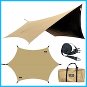 LUHANA タープ ヘキサタープ 難燃性ポリエステル 耐水圧8000mm ブラックコーティング 遮光 大型 5m延長ベルト付き 軽量 (サンドベージュ(難燃性ブラックコーティング), 420×410cm) | グランメゾンショップ